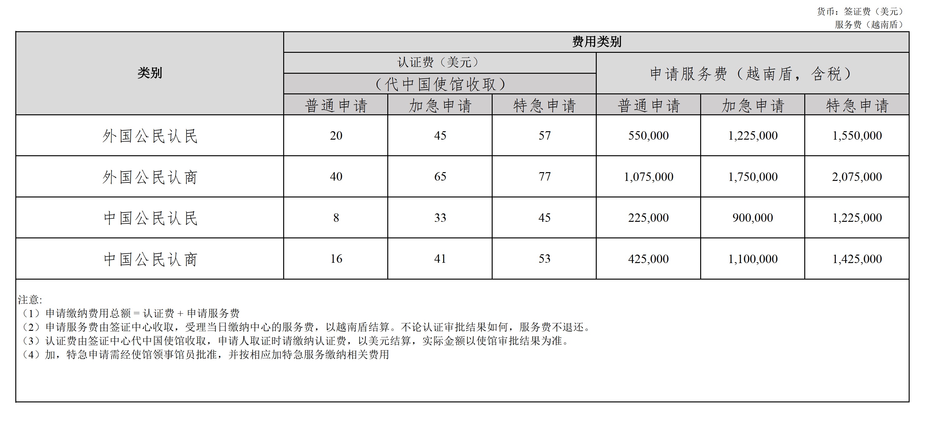 2、申请服务费由中心收取,受理申请当日需缴纳,以越南盾现金结算。不论审批结果如何,服务费恕不退还。