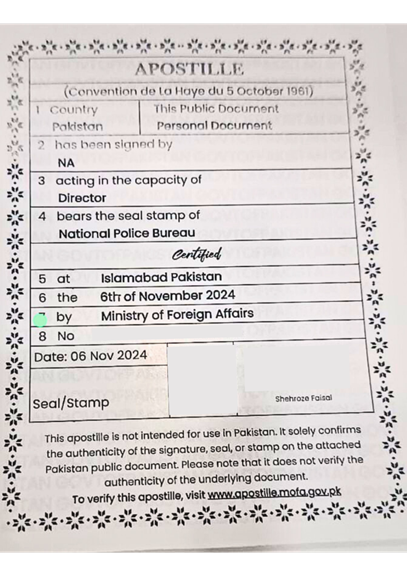 5. For visa submission of China, the documents like, Police character certificate; bank statement; kinship proofs and other documents MUST BE apostilled by MOFA of pakistan.