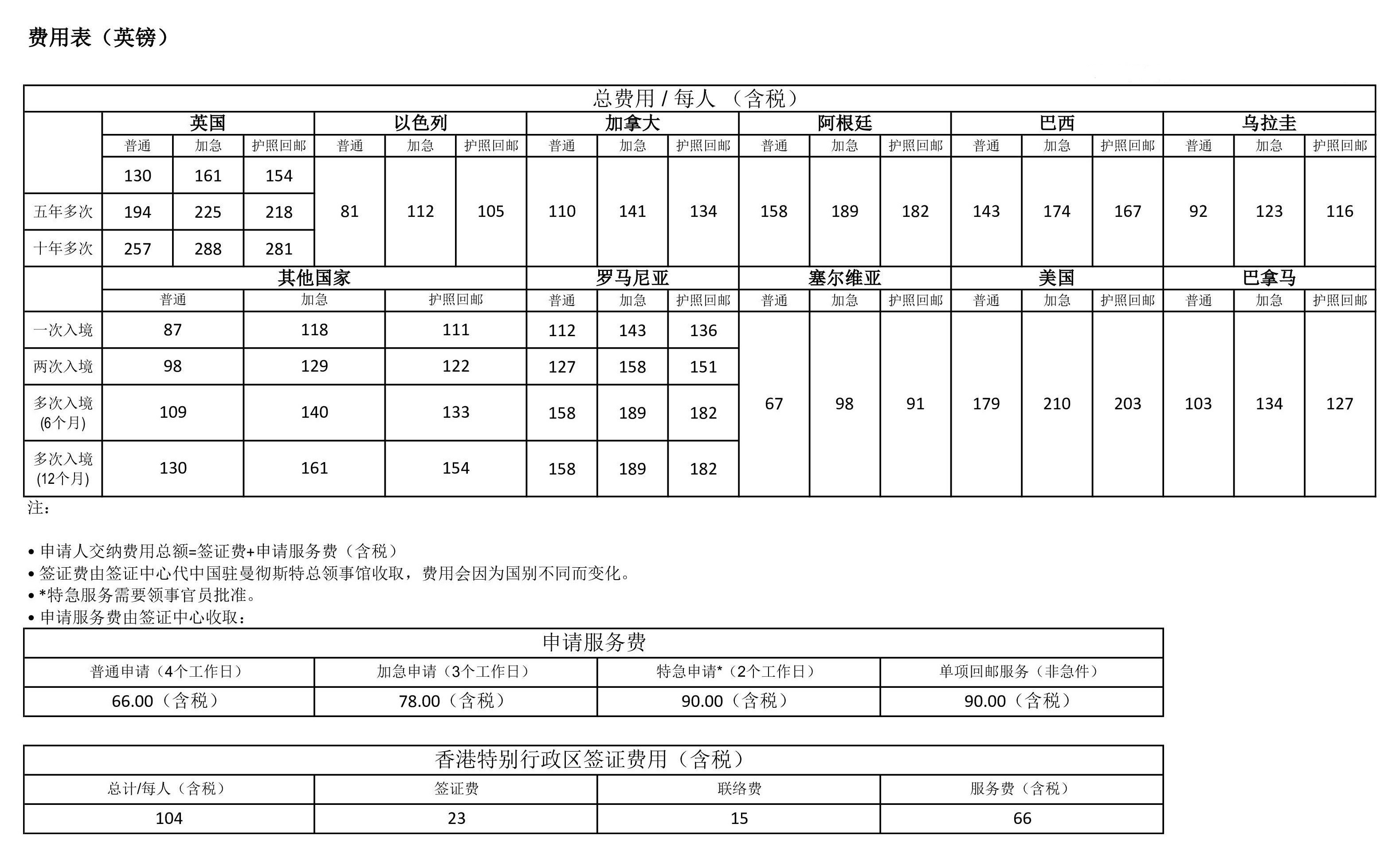 1、签证申请中心仅接受英国的借记卡付款,收款货币为英镑。
