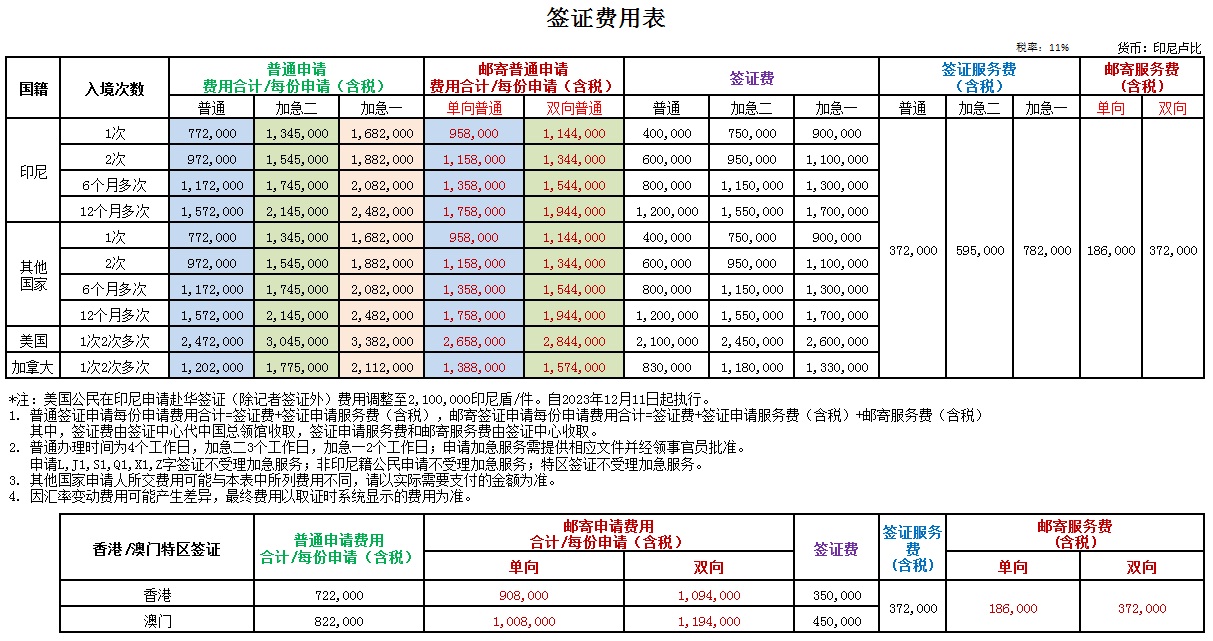 二、签证费及签证申请服务费如下:
