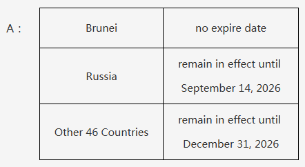 Nationals holding valid ordinary passports of 48 countries, namely Brunei, France, Germany, Italy, Spain, the Netherlands, Switzerland, Ireland, Hungary, Austria, Belgium, Luxembourg, New Zealand, Australia, Poland, Portugal, Greece, Cyprus, Slovenia, Slovakia, Norway, Finland, Denmark, Iceland, Andorra, Monaco, Liechtenstein, the Republic of Korea, Bulgaria, Romania, Croatia, Montenegro, North Macedonia, Malta, Estonia, Latvia, Japan, Brazil, Argentina, Chile, Peru, Uruguay,Saudi Arabia, Oman, Kuwait, Bahrain, Russia and Sweden are exempted from visa requirement if coming to China for the purpose of business, tourism, family or friends visits, exchange and transit. They can stay in China for no more than 30 days without a visa.
