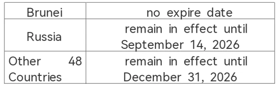 Nationals holding valid ordinary passports of 48 countries, namely Brunei, France, Germany, Italy, Spain, the Netherlands, Switzerland, Ireland, Hungary, Austria, Belgium, Luxembourg, New Zealand, Australia, Poland, Portugal, Greece, Cyprus, Slovenia, Slovakia, Norway, Finland, Denmark, Iceland, Andorra, Monaco, Liechtenstein, the Republic of Korea, Bulgaria, Romania, Croatia, Montenegro, North Macedonia, Malta, Estonia, Latvia, Japan, Brazil, Argentina, Chile, Peru, Uruguay,Saudi Arabia, Oman, Kuwait, Bahrain, Russia, Sweden, Canda and UK are exempted from visa requirement if coming to China for the purpose of business, tourism, family or friends visits, exchange and transit. They can stay in China for no more than 30 days without a visa.
