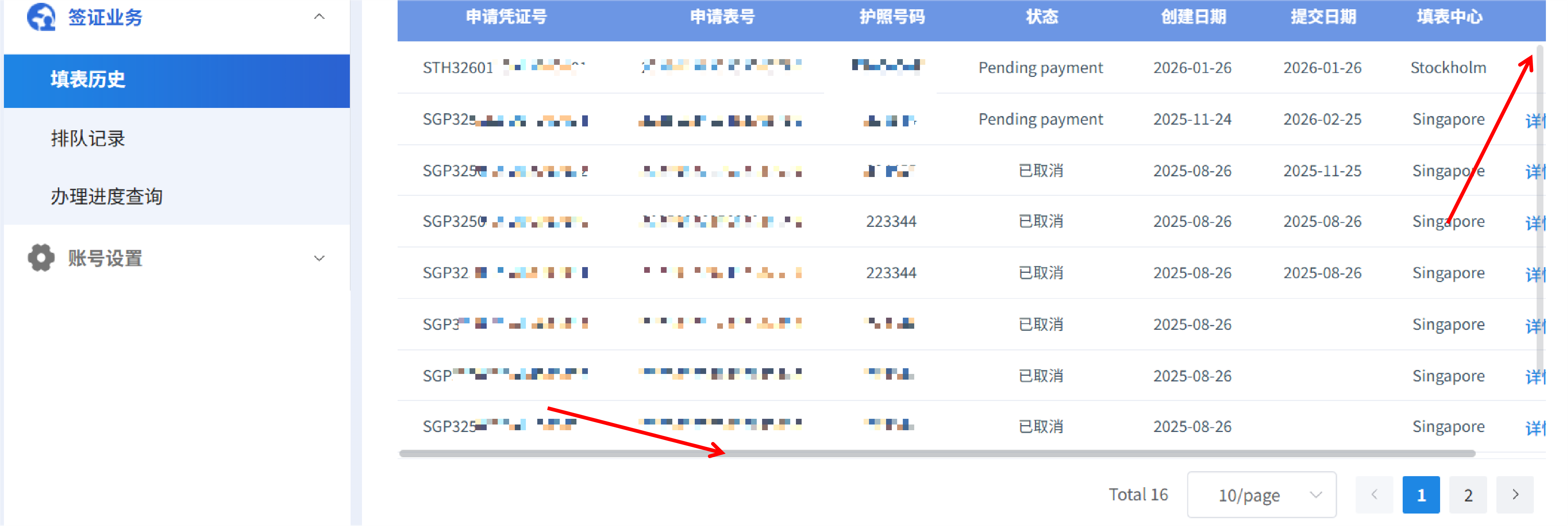 7. 如页面显示不全,可将鼠标放至列表下方,向右滑动滚轴。